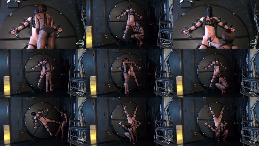Video Description: Mistress Kiana has her slave in a mask strapped down on a wheel and stripped naked. She pinches his nipples and teases him before squeezing his cock and balls. She pulls down on his testicles until he squeals. She continues to tease and torment him while transitioning to use her foot to crush his