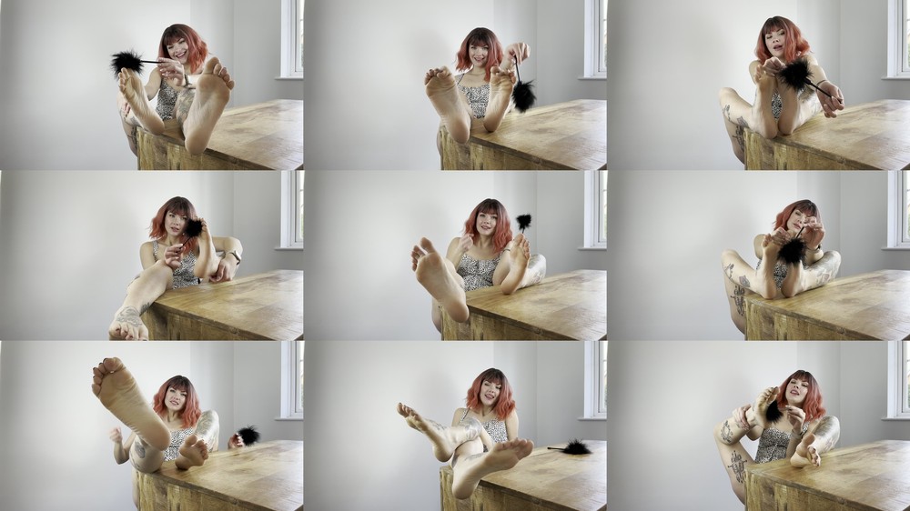 Video Description: I could you staring at my sweaty little bare feet, so I decide to tease you senseless!! Making hand jerk off movements I entice you to stroke your cock to my bare feet. I do all of this whilst sensually tickling my feet with a feather and giggling away!! Finishes off with a cum countdown feet joi,