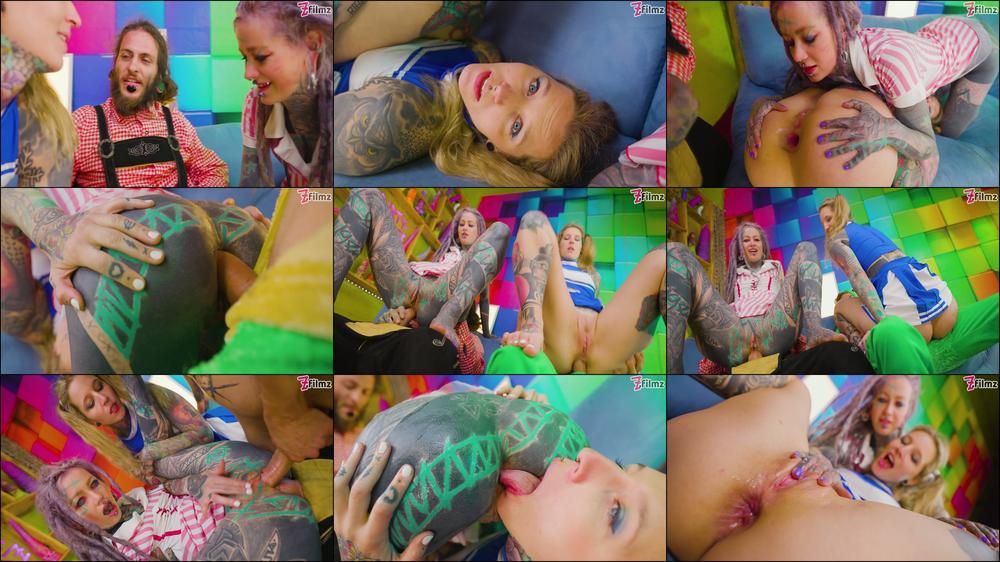 Video Description: Anuskatzz and Liza Rocketcock dress like cheerleaders go wild in this hardcore scene, forgetting their pom-poms but not their naughty plans. One, Liza teases Anuskatzz with her sexy moves, stretching and bending in ways that make her partner drool. Liza starts by giving a hardcore blowjob to Nikolaz Zpageti, her lips wrapping around his cock as she looks up at him with a mischievous grin. Anuskatzz watches eagerly getting herself ready for the action. Nikolaz clearly enjoying the attention, decides to switch things up.The room is filled with the sounds of their moans and the slap of flesh against flesh, creating a sexy and intense mood. Liza, not wanting to be left out, straddles the man's face in reverse cowgirl, grinding her pussy against his mouth as he eagerly licks and sucks. This is a wild, uninhibited session of hardcore fun, and these tattooed teens know exactly how to stretch and play